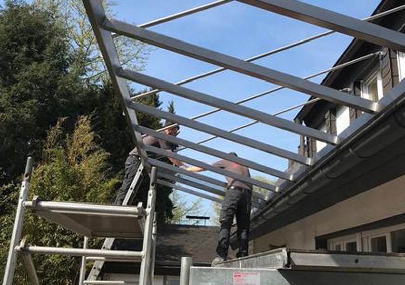 In Zusammenarbeit mit einem Metallbauer und Glaser – Partner aus unserem Handwerkerverbund – wurde die Überdachung der Gartenseite eines Hauses hergestellt.